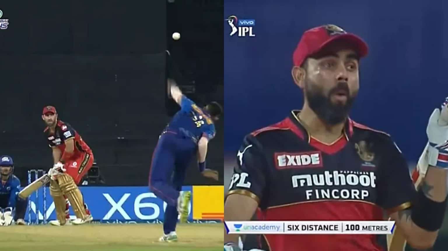 The Royal Challengers Bangalore has got quality overseas players this season in the presence of  Ab de Villiers, Glenn Maxwell, Daniel Christian, and Kyle Jamieson. In the match against MI, the team got good contributions from Virat Kohli and Glenn Maxwell in the batting department while chasing a total of 158. A video of Glenn Maxwell is getting Viral where he hit 100 metre six which off Krunal Pandya landed on the roof. The captain Virat Kohli is seen amazed by the huge shot hit by the batting all-rounder.