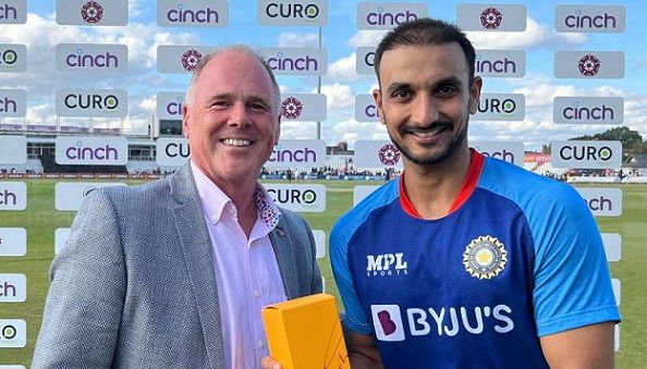 Harshal Patel awarded Man of the Match for his 54 with the Bat and 2/23 with the Ball.