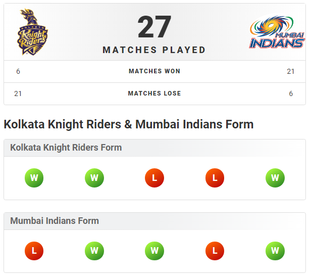 KKR vs MI Head-to-Head