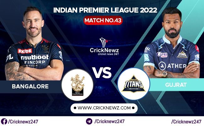 Gujarat Titans and Royal Challengers Bangalore will face one another in IPL 2022 Match 43 on thirtieth April 2022 at 3:30 pm IST in Brabourne Stadium, Mumbai. Gujarat Titans chased down 196 to beat Sunrisers Hyderabad by 5 wickets of their final match.