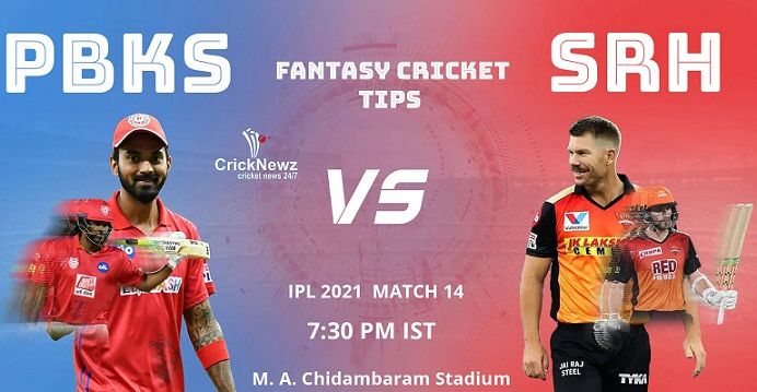 The fourteenth match of VIVO IPL 2021 will be played on the 21st of April at M.A. Chidambaram Stadium (Chepauk), Chennai between Punjab Kings and Sunrisers Hyderabad.
