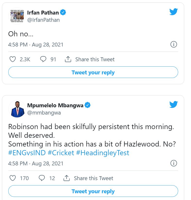 Twitter Reactions: Ollie Robinson runs through India line-up as England level the series
