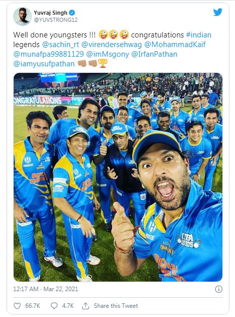 Yuvraj SIngh’s “Well Done Youngsters” Post After India Legends’ Final Win Goes Viral, Twitteratti Respond