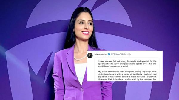 Pakistan sports presenter Zainab Abbas has recently caught every headline as she left India in a hurry, as she stated that she was feeling ‘intimidated and scared’ by what was happening on social media. Furthermore, despite there being no threat to her family, she needed some personal space. Taking to Twitter, Abbas clarified what she had felt and even apologised for her past posts that were deemed controversial.